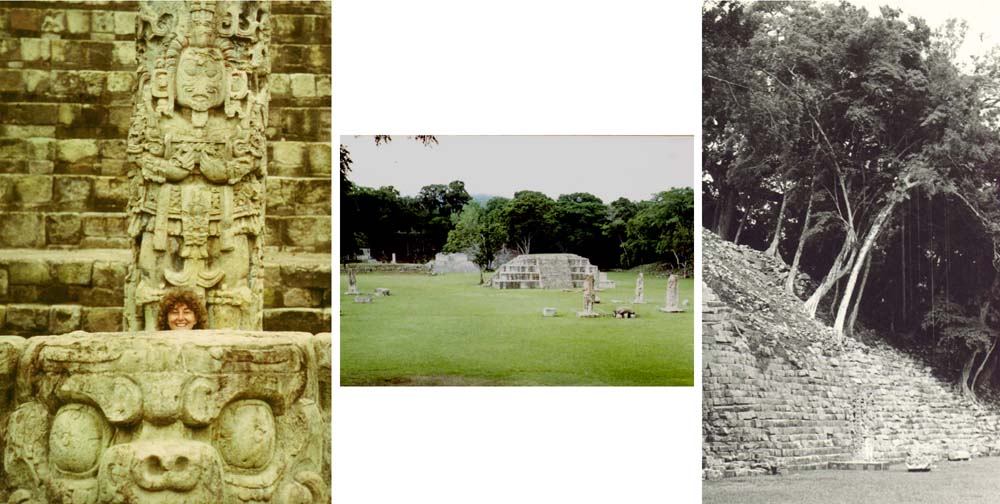 Is it only two weeks since we were making mad dashes to avoid rain drops? (more like "buckets" as I recall actually) And now my "Golden Boy" is peeling, and I ... I am practically "molting"! Since I last wrote, we have spent one heavenly week on the little Caribbean island of Utila. It is one of the Honduras Bay Islands, about 30 km from the mainland. We'd heard some about the islands before we travelled there, but we weren't at all prepared for the shock we felt when we stepped ashore. We walked around with eyes wide and mouths agape for several hours. First of all, the waters were the clear blue that was depicted in all the entirely outofplace cigarette commercials of my childhood ... and warm like in a dream! (water about 8085o F. and air temp in the 90's) Secondly, the people are all blacks and whites. Essentially no Spanish or Indian people. And the language of the island is English! This was an English colony until l857. But consider how long that is for such a small group to be separated from their mother tongue ... the accent that's evolved is like no English I've ever encountered. It's crazy to listen to!