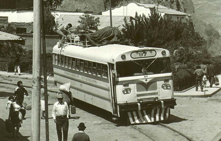 Excuse me for delaying Robert's fine composition from the mails so long. Since the above, we've crossed the equator two more times and are back in Quito. We've been to the northwest coast of Ecuador, a lot of traveling through jungle ... interesting trip, and novel, to say the least. The only land approach to the town of San Lorenzo is by rail. This "train" is not what one usually thinks of as a train. To cover this 7-hour-plus distance tying San Lorenzo with the main roads of the country, these creative people have put truck- and bus-bodies onto railroad car chassis! One "bus" we saw still had the highway wheels hanging down, too. Seeing the jungle was interesting, too; but within a few days we'll be southeast of Quito, on the other side of the Andes and into the Amazon! There we expect to take a "real" jungle trip ... hiking and by canoes.