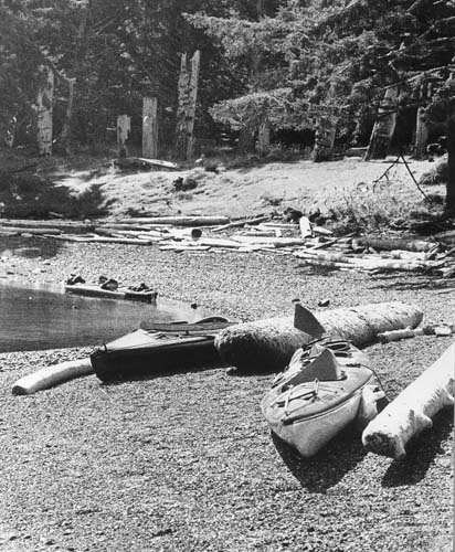 Kayaks pay homage to totem poles at Ninstints