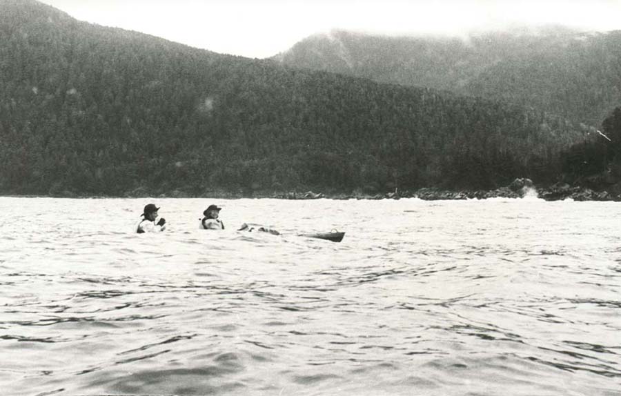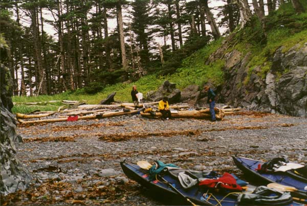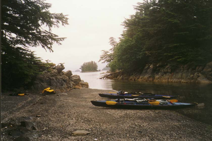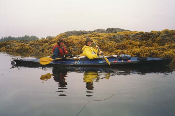 One day we spent paddling around the Myriads. It is an aptly named group of innumerable islands, most of them quite small. We paddled first on the outside enjoying the great swells of the Pacific Ocean. Then we headed back on the inside. The tide was low and we found it fascinating to paddle close to the islets and study the innumerable kelp beds. Had it just stopped raining it would have been perfect