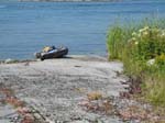 Vi hade tänkt att det skulle bli en enkel och trevlig paddlingstur tillbaka till Saltarö. Rodret började dock strejka redan på morgonen, vilket gjorde det svårare att styra. Lunchen åt vi på en ovanligt brant klippa och det var lite svårt att krångla sig in i kajaken igen. När det var avklarat och vi skulle börja paddla, upptäckte jag att rodret helt hade slutat fungera på ena sidan. Efter några fruktlösa försök att laga det, lyfte jag det ur vattnet. Vår Nautiraid-kajak är konstruerad med för och akter en aning högre än mittpartiet. Detta gör den enklare att styra med fungerande roder - men alltför enkelt utan ett sådant! Så fort kajaken har börjat svänga lite, fortsätter den att svänga än mer och man måste motverka detta med paddeln. Detta gjorde det betydligt svårare för oss bägge att ta oss tillbaka och vi blev lika trötta som glada att komma fram. För att spä på det hela, var dagens paddling ganska lång.